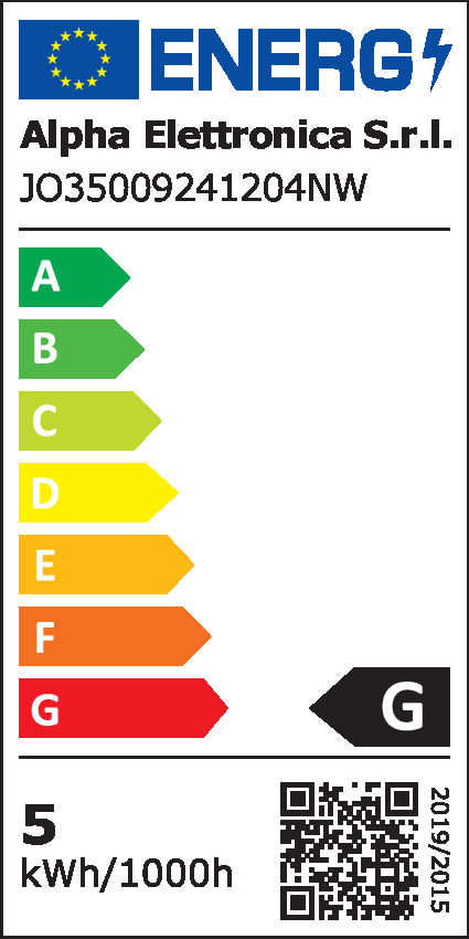 ** Caratteristiche Generali ** Applicazione: Per illuminazione Tempo di vita L70B50: 20000h Numero cicli di accensione: 10000 cicli Fattore di sopravvivenza: 0.9 Tipo nastro: Monocolore Colore Supporto: Bianco Tipo di led: smd 2835 0.2W n. Led al metro: 120 led/m Lunghezza max in cascata: 5m Rischio fotobiologico: Esente ** Caratteristiche di Illuminazione ** Colore: Bianco naturale Flusso Nastro Led: 880lm/m Flusso @ 50cm: 440lm CRI: 90 Angolo di emissione: 120° Warm-up (60%): 0.1s Fattore mantenimentoflusso: 0.96 Uniformità colore (SDCM): 6 ** Caratteristiche Elettriche ** Classe energetica: G Potenza Nastro Led: 9.6W/m Potenza 50cm: 4.8W Potenza unità minima: 0.48W Tens. funzionamento DC: 24Vdc Dimmerabile: si Alimentatore: Esterno (non incluso) ** Caratteristiche Sorgente Luminosa ** Temp. Colore: 4000K ** Caratteristiche Meccaniche ** Lunghezza nastro: 5m N. Led/taglio: 6 Lunghezza taglio minima: 50mm Larghezza: 5mm Spessore: 1.4mm Altezza: 2mm Fissaggio: Biadesivo 3M Grado di protezione: IP20 Tipo di protezione: Nessuno Connessioni: Cavo libero ** Caratteristiche Termiche ** Temp. di funzionamento: -10 / 40°C