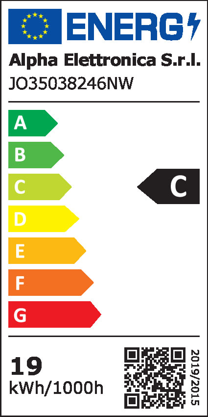 ** Caratteristiche Generali ** Applicazione: Per illuminazione Tempo di vita L70B50: 20000h Numero cicli di accensione: 10000 cicli Fattore di sopravvivenza: 0.9 Tipo nastro: Monocolore Colore Supporto: Bianco Tipo di led: smd 5630 n. Led al metro: 224 led/m Lunghezza max in cascata: 5m Rischio fotobiologico: Esente ** Caratteristiche di Illuminazione ** Colore: Bianco naturale Flusso Nastro Led: 6600lm/m Flusso @ 50cm: 3298lm CRI: 80 Angolo di emissione: 120° Warm-up (60%): 0.1s Fattore mantenimento flusso: 0.96 Uniformità colore (SDCM): 6 ** Caratteristiche Elettriche ** Classe energetica: C Potenza Nastro Led: 38W/m Potenza 50cm: 19W Potenza unità minima: 1.3566W Tens. funzionamento DC: 24Vdc Dimmerabile: si Alimentatore: Esterno (non incluso) ** Caratteristiche Sorgente Luminosa ** Temp. Colore: 4000K ** Caratteristiche Meccaniche ** Lunghezza nastro: 5m N. Led/taglio: 8 Lunghezza taglio minima: 35.7mm Larghezza: 5000mm Spessore: 1.3mm Altezza: 10mm Fissaggio: Biadesivo 3M Grado di protezione: IP20 Tipo di protezione: Nessuno Connessioni: Cavo libero ** Caratteristiche Termiche ** Temp. di funzionamento: -10 / 40°C
