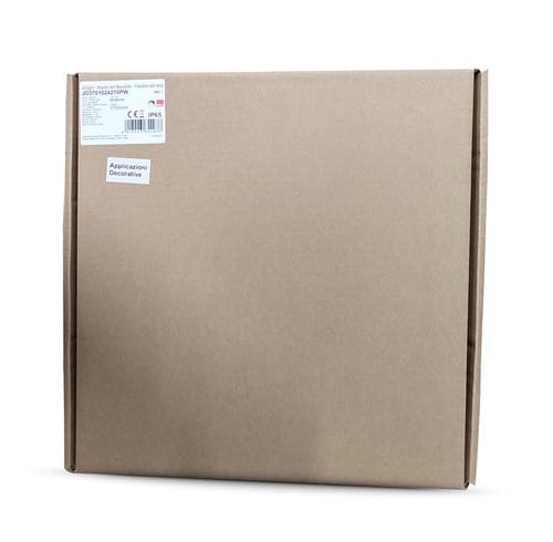 ** Caratteristiche Generali ** Applicazione: Decorativa Tempo di vita L70B50: 20000h Numero cicli di accensione: 10000 cicli Tipo nastro: Monocolore Colore Supporto: Bianco Tipo di led: smd 2216 n. Led al metro: 240 led/m Lunghezza max in cascata: 5m Rischio fotobiologico: Esente ** Caratteristiche di Illuminazione ** Colore: Bianco freddo Flusso Nastro Led: 370lm/m CRI: 90 Angolo di emissione: 120° Warm-up (60%): 0.1s ** Caratteristiche Elettriche ** Potenza Nastro Led: 10W/m Potenza unità minima: 1W Tens. funzionamento DC: 24Vdc Dimmerabile: si Alimentatore: Esterno (non incluso) ** Caratteristiche Sorgente Luminosa ** Temp. Colore: 6000K ** Caratteristiche Meccaniche ** Lunghezza nastro: 10m N. Led/taglio: 24 Lunghezza taglio minima: 100mm Larghezza: 6mm Spessore: 12mm Grado di protezione: IP65 Connessioni: Cavo libero ** Caratteristiche Termiche ** Temp. di funzionamento: -10 / 40°C ** Accessori inclusi: ** - 20 Graffette - 20 Viti di fissaggio ** Attenzione ** La striscia Neon Flex da 10m viene fornita con i cavi già intestati da entrambi i lati pronta per essere alimentata nella maniera corretta. Il raggio minimo di curvatura è di 5cm. Non piegare il nastro LED in modo forzato per evitare danni ai componenti e alla resina.