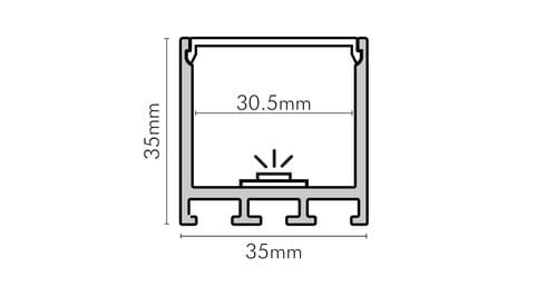 ** Caratteristiche generali ** Kit composto da: -n. 1 profilo di alluminio da 2m, -n. 1 copertura da 2m -n. 2 terminali di chiusura in plastica -n. 4 graffette di fissaggio Offre un alto grado di dissipazione unitamente alla possibilità di realizzare installazioni dal design elegante e moderno. Si consiglia l'impiego della serie di nastri con biadesivo JO350 disponibile nelle varie potenze. La copertura opaca è realizzata tramite un profilo in policarbonato per offrire la massima diffusione della luce. ** Caratteristiche Elettriche ** Potenza dissipabile (35°C): 40W/m ** Caratteristiche Meccaniche ** Lunghezza profilo: 2m Larghezza: 35mm Larghezza interna: 30.5mm Altezza: 35mm Grado di protezione: IP20 Materiale corpo: Alluminio Colore corpo: Naturale Diffusore: Policarbonato opaco ** Attenzione ** La copertura in Policarbonato (PC) è più sensibile alle temperature e ai raggi UV rispetto alla copertura in PMMA. Il profilo illustrato è un componente. Il suo corretto funzionamento con nastri led o moduli led dipende da importanti requisiti di installazione e dimensionamento. La potenza dissipabile è stata calcolata considerando una temperatura ambiente non superiore a 35°C in aria. Condizioni di installazione differenti devono essere opportunamente verificate da personale tecnico. Utilizzare la copertura solo con nastri led IP20. Alpha Elettronica declina ogni responsabilità per danni o malfunzionamenti derivati da un uso inappropriato del profilo.