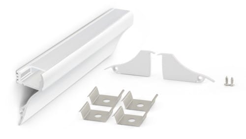 ** Caratteristiche generali ** Kit composto da: -n. 1 profilo di alluminio da 2m, -n. 1 copertura da 2m -n. 2 terminali di chiusura in plastica con viti -n. 4 graffette di fissaggio ** Caratteristiche Elettriche ** Potenza dissipabile (35°C): 30W/m **Caratteristiche Meccaniche ** Lunghezza profilo: 2m Larghezza: 17.9mm Larghezza interna: 12.1mm Altezza: 40.6mm Peso alluminio al metro: 160g/m Peso cover al metro: 31g/m Grado di protezione: IP20 Materiale corpo: Alluminio verniciato Colore corpo: Bianco Diffusore: Policarbonato opaco ** Attenzione ** La copertura in PMMA è più resistente alle temperature e ai raggi UV rispetto alla copertura in Policarbonato (PC). Il profilo illustrato è un componente. Il suo corretto funzionamento con nastri led o moduli led dipende da importanti requisiti di installazione e dimensionamento. La potenza dissipabile è stata calcolata considerando una temperatura ambiente non superiore a 35°C in aria. Condizioni di installazione differenti devono essere opportunamente verificate da personale tecnico. Utilizzare la copertura solo con nastri led IP20. Alpha Elettronica declina ogni responsabilità per danni o malfunzionamenti derivati da un uso inappropriato del profilo.