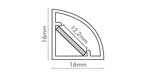 ** Caratteristiche generali ** Kit composto da: -n. 1 profilo di alluminio da 2m, -n. 1 copertura da 2m -n. 2 terminali di chiusura in plastica -n. 4 graffette di fissaggio ** Caratteristiche Elettriche ** Potenza dissipabile (35°C): 14W/m ** Caratteristiche Meccaniche ** Lunghezza profilo: 2m Larghezza: 16mm Larghezza interna: 12.2mm Altezza: 16mm Grado di protezione: IP65 Materiale corpo: Alluminio Colore corpo: Naturale Diffusore: Policarbonato opaco ** Attenzione ** Il profilo illustrato è un componente. Il suo corretto funzionamento con nastri led o moduli led dipende da importanti requisiti di installazione e dimensionamento. La potenza dissipabile è stata calcolata considerando una temperatura ambiente non superiore a 35°C in aria. Condizioni di installazione differenti devono essere opportunamente verificate da personale tecnico. Utilizzare la copertura solo con nastri led IP20. Alpha Elettronica declina ogni responsabilità per danni o malfunzionamenti derivati da un uso inappropriato del profilo. Il profilo illustrato non é compatibile con dimmer metal touch JO-CONTR-014. Alpha Elettronica declina ogni responsabilità per danni o malfunzionamenti derivati da un uso inappropriato del profilo. Il montaggio della copertura plastica deve essereeffettuata a scorrimento. Il profilo illustrato viene definito IP65 esclusivamente installandolo con i terminali di chiusura sigillati. In caso di mancata installazione di tali terminali il grado di protezione decade a IP20.