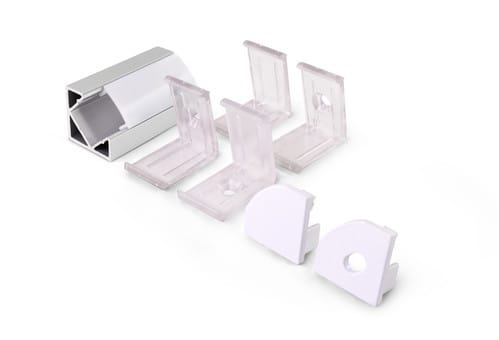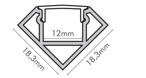** Caratteristiche generali ** Kit composto da: -n. 1 profilo di alluminio da 2m, -n. 1 copertura da 2m -n. 2 terminali di chiusura in plastica -n. 4 graffette di fissaggio ** Caratteristiche Elettriche ** Potenza dissipabile (35°C): 19W/m ** Caratteristiche Meccaniche ** Lunghezza profilo: 2m Larghezza: 18.5mm Larghezza interna: 12mm Altezza: 18.5mm Peso alluminio al metro: 192g/m Peso cover al metro: 31g/m Materiale corpo: Alluminio anodizzato Colore corpo: Naturale Diffusore: Policarbonato opaco ** Attenzione ** La copertura in Policarbonato (PC) è più sensibile alle temperature e ai raggi UV rispetto alla copertura in PMMA. Il profilo illustrato è un componente. Il suo corretto funzionamento con nastri led o moduli led dipende da importanti requisiti di installazione e dimensionamento. La potenza dissipabile è stata calcolata considerando una temperatura ambiente non superiore a 35°C in aria. Condizioni di installazione differenti devono essere opportunamente verificate da personale tecnico. Utilizzare la copertura solo con nastri led IP20. Alpha Elettronica declina ogni responsabilità per danni o malfunzionamenti derivati da un uso inappropriato del profilo.
