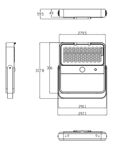 ** Caratteristiche Generali ** Tempo di vita L70B50: 20000h Numero cicli di accensione: 15000 cicli Rischio fotobiologico: Esente ** Caratteristiche di Illuminazione ** Colore: Bianco naturale Flusso: 1500lm CRI: 80 ** Caratteristiche Elettriche ** Potenza: 8W Dimmerabile: no ** Caratteristiche Sorgente Luminosa ** Temp. Colore: 4000K ** Caratteristiche Meccaniche ** Lunghezza: 337.8mm Larghezza: 279.5mm Altezza: 59.5mm Fissaggio: Staffe Incluse, Tramite viti Montaggio: A parete Grado di protezione: IP65 Materiale corpo: Alluminio verniciato Colore corpo: Grigio Tipo Controllo: Sensore PIR Orientabile: si ** Caratteristiche Termiche ** Temp. di funzionamento: -10 / 40°C ** Caratteristiche Batteria ** Pacco batteria incluso: 4x Li-Ion 18650 10000mAh Durata: 8h (100% luminosità), 14h (50% luminosità) Tempo di ricarica: 7h ** Caratteristiche Pannello solare ** Potenza: 7W Tensione Voc: 5V ** Caratteristiche PIR ** Angolo di emissione regolabile: 60°,90°,120° Area di rilevamento: 8m Altezza di installazione: Max 4m ** Modalità di funzionamento ** M1: ON 100% per 5 ore, poi 20% M2: ON 60% M3: ON 20%, quando rileva un movimento 100% dopo 30sec torna in modalità stand-by al 20% T: ON 100% per 2 ore poi torna alla modalità M precedentemente impostata ** Contenuto confezione: ** - Proiettore; - Telecomando (batterie non incluse) - Kit di fissaggio; - Istruzioni