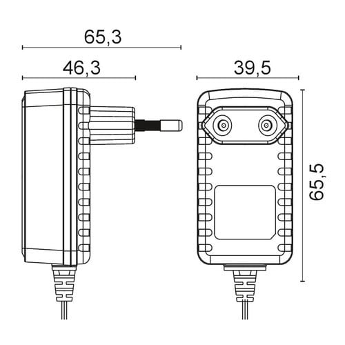 ** Caratteristiche Generali ** Tecnologia: switching Costruzione: plugin Tipo regolazione: CV Classe isolamento: II Grado Protezione: IP20 ** Caratteristiche Elettriche ** Tensione d'ingresso: 100‑240Vac Tolleranza d'ingresso: -10% +6% Frequenza: 50/60Hz Potenza: 18W Tensione d'uscita: 9V Corrente d'uscita: 2000mA Regolazione di carico: ±5% Regolazione di linea: ±5% Tolleranza tensione d'uscita: ±5% Ripple: