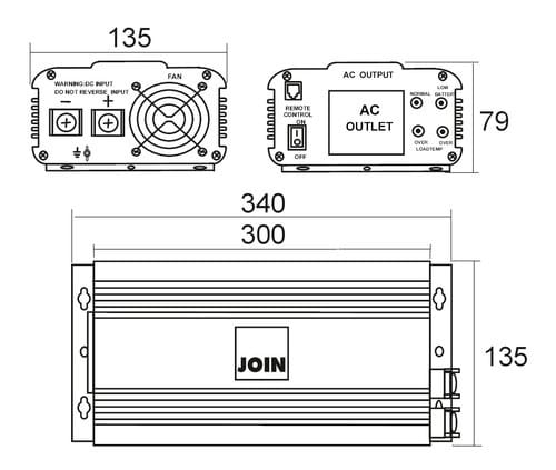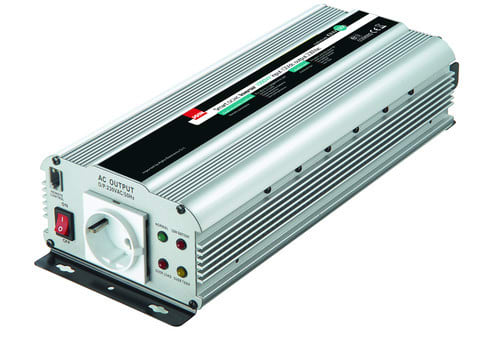 Adatto per carichi resistivi. Inverter adatto per impianto fotovoltaico ad isola (stand-alone). ** Caratteristiche Generali ** Tipologia inverter: semplice Raffreddamento: Convezione forzata - ventola automatica ** Caratteristiche Inverter ** Forma d'onda in uscita: Sinusoidale modificata Frequenza: 50Hz Tensione d'ingresso: 12Vdc Tensione d'uscita: 230Vac Potenza d'uscita di picco: 2400W Potenza d'uscita nominale: 1000W Efficienza massima: 85% Corrente in ingresso: 84A Capacità minima batteria: >70Ah Consumo a vuoto in stand by: