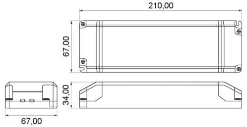 ** Caratteristiche Generali ** Tipo regolazione: CV Classe isolamento: II Correzione PF: Con PFC Dimmerabile: si Dimmerazione: 230V - Taglio di fase Grado Protezione: IP20 ** Caratteristiche Elettriche ** Tensione d'ingresso: 220‑240Vac Tolleranza d'ingresso: -10% +6% Frequenza: 50/60Hz Fattore di potenza: >0.95 Tensione d'uscita: 24V Corrente d'uscita: 500 - 2080mA Protezioni: sovratensione, sovratemperatura, corto circuito ** Caratteristiche Meccaniche ** Dimensioni (LxWxH): 184 x 61 x 32mm Raffreddamento: passivo Peso: 0.32kg Materiale contenitore: Plastico Colore: Bianco Connessioni: morsetti a vite ** Caratteristiche Termiche ** Temperatura di lavoro: -20/50°C Temperatura involucro: 70°C