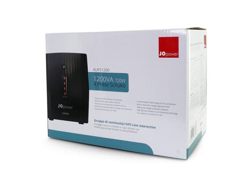 UPS compatto da 1200VA con batteria integrata e 4 prese schuko. Fornisce temporaneamente l'energia della batteria durante le interruzioni di corrente evitando la perdita di dati ed eventuali danni all’hardware. Ideale per l’uso in casa e in piccoli uffici. La funzione AVR attenua i disturbi di rete e stabilizza la tensione di uscita a 230V. Le prese protette da sovratensione impediscono danni dovuti a colpi di corrente, picchi e fluttuazioni. Gestione della ventola (50%-100%) automatica. La velocità della ventola aumenta al 100% in caso di carico collegato in uscita. Rumore udibile ad 1m: 40-45dB ** Requisiti di sistema ** Connessione all'alimentazione a parete dotata di messa a terra. Dispositivi supportati: PC, monitor. ** Caratteristiche Generali ** Forma d'onda in uscita (mod. batteria): Sinusoidale modificata Tecnologia: Line-interactive Tipologia: Monofase Raffreddamento: Convezione forzata - ventola automatica Potenza: 1200VA - 720W Fattore di potenza: 0.6 Stabilizzatore elettronico (AVR): si Rumorosità max. a 1m: =45dBA Classe di protezione: I Installazione: verticale/tower Colore: Nero Contenuto confezione: Manuale, UPS ** Ingresso ** Tensione d'ingresso: 162‑290Vac Frequenza ingresso: 50/60Hz ** Uscita ** Tensione d'uscita (mod. batteria): 230Vac (220‑240Vac) Frequenza uscita (mod. batteria): 50/60Hz Corrente d'uscita: 5.2mA Tempo d'intervento: 4ms ** Batterie ** Tensione batteria: 12V Capacità batterie: 2 x 7Ah Tot. 24V Tempo di ricarica batteria (90%): 8hr Connessioni batteria: faston 6,3mm Sostituzione batterie: Standard Estensione autonomia: Non disponibile ** Diagnostica ** Indicatore stato: LED Allarmi: Modalità batteria, Batteria scarica, Sovraccarico, Guasto Software: PowerMaster+ Local&Remote: Windows, macOS, Linux, VMware Gestione: Auto-ricarica, Auto-restart, Software power management ** Protezioni ** Protezioni uscita: sovraccarico ** Caratteristiche Meccaniche ** Dimensioni: 298mm x 148mm x 178mm Protezione: IP20 Materiale chassis: ABS ** Caratteristiche Termiche ** Temperatura di funzionamento: 0/40°C Temperatura raccomandata: 20-25°C Umidità max: 90% ** Collegamenti ** Connessioni alimentazione ingresso: Spina Schuko Connessioni alimentazione uscite: 4 prese Schuko Comunicazioni: USB HID, Protezione RJ45/RJ11 ** Connessioni e visualizzazioni ** USB per la visualizzazione tramite software (fornito) dello stato di funzionamento. RJ45 (Network/Fax/Modem) per protezione della linea telefonica. LED per l'indicazione dello stato di funzionamento. ** Allarmi ** -Batteria in scarica: Segnalazione acustica ogni 30s; - Batteria scarica: Segnalazione acustica ogni 2s; - Sovraccarico: Segnalazione acustica ogni 0.5s - Guasto: Segnalazione acustica continua ** Avvertenze ** Le batterie utilizzate sono esclusivamente batterie al piombo ermetiche senza manutenzione che permettono l’installazione dell'apparecchiatura, in conformità alla normativa EN50272-2, senza necessità di progettazione di locali batterie separati. Il tempo di backup può variare a seconda dell'assorbimento dei carichi collegati. Danni o perdite di dati possono essere dovute a anomalie della rete elettrica. Collegare all'UPS solo PC o Monitor. Alpha Elettronica declina ogni responsabilità per eventuali perdite di dati ed eventuali danni causati dallarete elettrica.