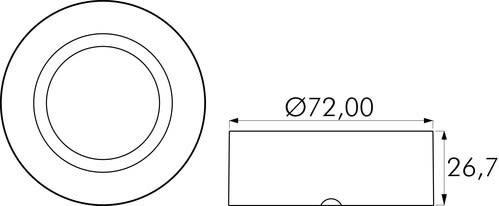 ** Caratteristiche Elettriche ** Potenza max installabile: 20W ** Caratteristiche Meccaniche ** Attacco: G4 Altezza: 26.7mm Diametro: ø72mm Grado di protezione: IP20 Materiale corpo: Alluminio verniciato Colore corpo: Bianco Finitura: Opaca Diffusore: Vetro opaco Orientabile: no