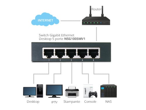 ALPHA ELETTRONICA SR - ALPNSG1005MV1 SWITCH GIGABIT 5 PORTE - UNMANAGED - NSG1005MV1