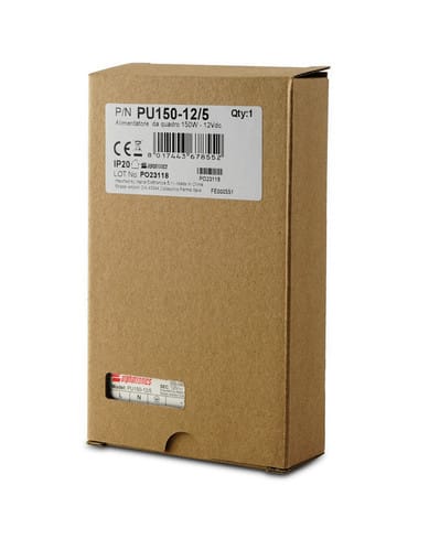 ** Caratteristiche Generali ** Tecnologia: switching Costruzione: da quadro Tipo regolazione: CV Classe isolamento: I Correzione PF: Senza PFC Grado Protezione: IP20 ** Caratteristiche Elettriche ** Regolazione uscita: trimmer ±10% Tensione d'ingresso: 100‑240Vac Tolleranza d'ingresso: -10% +6% Frequenza: 50/60Hz Fattore di potenza: >0.5 Potenza: 150W Tensione d'uscita: 12V Corrente d'uscita: 12500mA Tensione d'uscita: 10.8 - 13.2V Regolazione di carico: ±1% Regolazione di linea: ±0.5% Ripple: