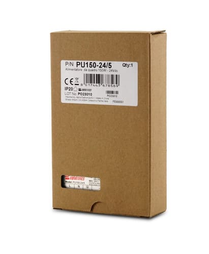 ** Caratteristiche Generali ** Tecnologia: switching Costruzione: da quadro Tipo regolazione: CV Classe isolamento: I Correzione PF: Senza PFC Grado Protezione: IP20 ** Caratteristiche Elettriche ** Regolazione uscita: trimmer ±10% Tensione d'ingresso: 100‑240Vac Tolleranza d'ingresso: -10% +6% Frequenza: 50/60Hz Fattore di potenza: >0.5 Potenza: 150W Tensione d'uscita: 24V Corrente d'uscita: 6250mA Tensione d'uscita: 21.6 - 26.4V Regolazione di carico: ±1% Regolazione di linea: ±0.5% Ripple: