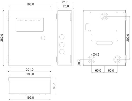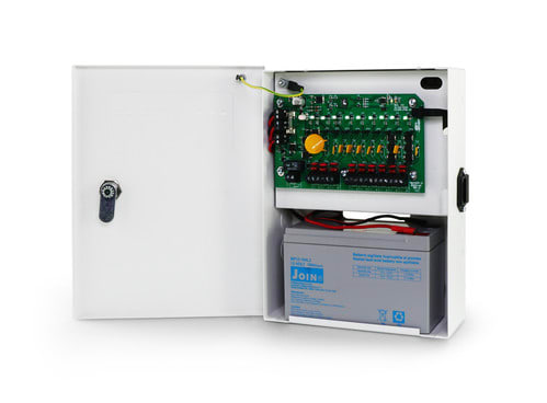 Box di alimentazione ideale per alimentare più telecamere o altri dispositivi di sicurezza. L'alimentatore è dotato di 9 canali di uscita singolarmente protetti da fusibile ripristinabile PTC. Lo stadio di caricabatterie è indipendente rispetto alle uscite principali e ricarica la batteria durante il funzionamento da rete 230V. L'alimentazione di uscita è disponibile dalla batteria tampone anche in caso di mancanza di rete. ** Attenzione: ** Lo stadio di uscita di alimentazione principale e di caricabatterie sono indipendenti (separati l'uno dall'altro) per cui la tensione di uscita dell'alimentatore è regolabile anche al di sotto della tensione di batteria. ** Ingresso: ** Tensione di ingresso: 100-240Vac 50/60Hz ** Uscita: ** Canali: 9 Tensione di uscita: 12Vdc Regolazione: 10-13,8Vdc Corrente: 8ch x 1,1A + 1ch x 2,5A Protezione singolo canale: Polyswitch (fusibile ripristinabile). ** Caricabatterie: ** Tensione: 13,8Vdc Regolazione: come tensione di uscita Corrente di carica: 900mA Indipendente rispetto allo stadio di alimentazione principale. ** Caratteristiche Generali ** Tecnologia: switching Costruzione: da quadro Tipo regolazione: CV Classe isolamento: I Correzione PF: Con PFC Grado Protezione: IP20 ** Caratteristiche Elettriche ** Regolazione uscita: trimmer Tensione d'ingresso: 100‑240Vac Tolleranza d'ingresso: -10% +6% Frequenza: 50/60Hz Potenza: 150W Tensione d'uscita: 13.8V Corrente d'uscita: 10000mA Tensione d'uscita: 10.8 - 13.5V Protezioni: sovraccarico, sovratemperatura, corto circuito ** Caratteristiche Meccaniche ** Dimensioni (LxWxH): 201 x 80.7 x 260mm Raffreddamento: passivo Materiale contenitore: Metallico Colore: Bianco Connessioni: morsetti a vite ** Caratteristiche Termiche ** Temperatura di lavoro: -20/40°C ** Batterie alloggiabili all'interno del box: ** 1pz BP12-7.0 - Piombo AGM 12V 7Ah oppure 1pz BP12-10 - Piombo AGM 12V 10Ah