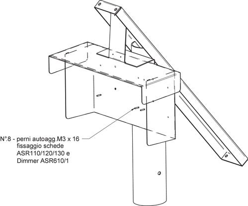 Supporto per regolatore di carica serie ASR e Dimmer ASR610/1. Il prodotto risulta indispensabile per proteggere i componenti elettronici installati all'interno del testa palo. Perni sul retro per fissaggio della struttura interna del testa palo SU-SOLAR-P04. Bulloneria inclusa: - 8 Dadi M3 - 8 Rondelle M4 - 4 Dadi M4 - 4 Rondelle M4 ** Avvertenze ** Il prodotto in oggetto è un componente. Il montaggio deve essere affidato a personale qualificato.