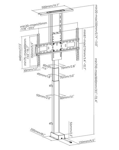 ALPHA ELETTRONICA SR - ALPSU3780/LM SUPPORTO TV LED DA PAVIMENTO MOTORIZZ... - SU3780/LM