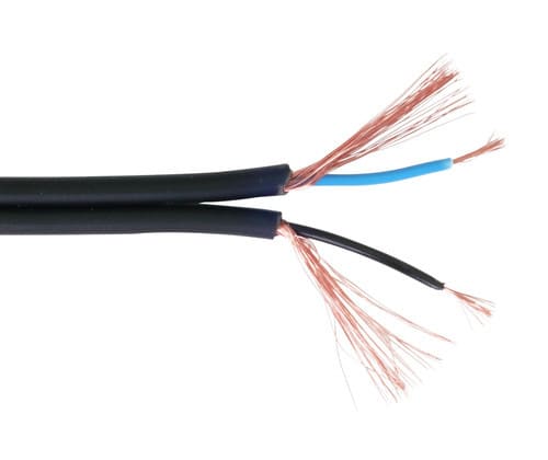** Caratteristiche generali ** Applicazione CPR: Posa mobile ** Caratteristiche fisiche ** Lunghezza: 100m Larghezza: 3mm Spessore: 6.3mm Materiale guaina: PVC Colore guaina: Nero Formazione cavo: 2 x 0.14mm² Materiale isolante conduttori: PE Materiale conduttori: Rame Puro Formazione conduttori: 7 x 0.1mm Colore conduttori: Blu / Nero Schermatura: Calza Copertura schermo: 80%