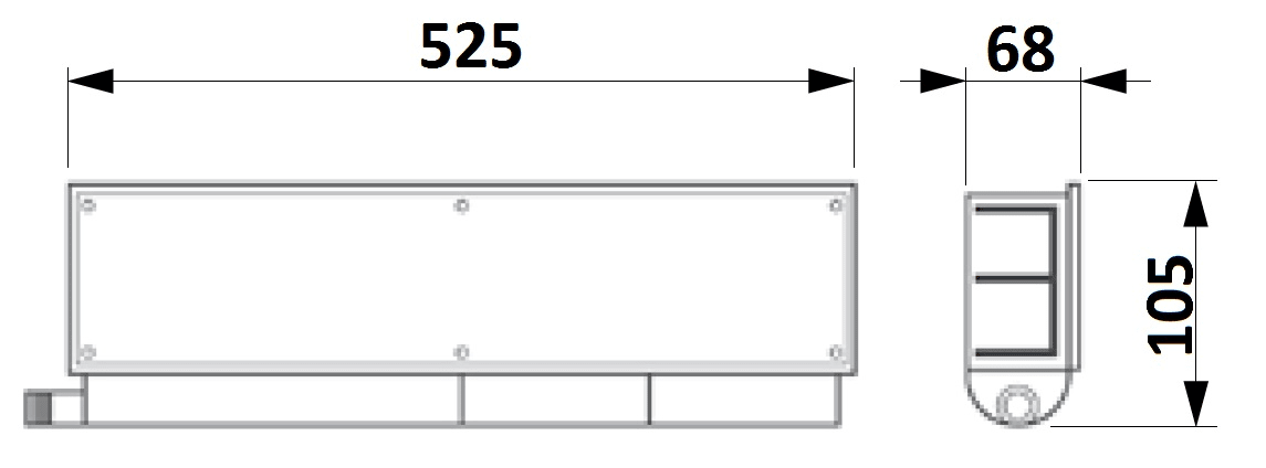Scatola per la predisposizione con vaschetta scarico condensa reversibile, guarnizioni e viti per coperchio. Uscite: 1 x Ø 18-20 mm. Dimensione: 525x105x68 mm.