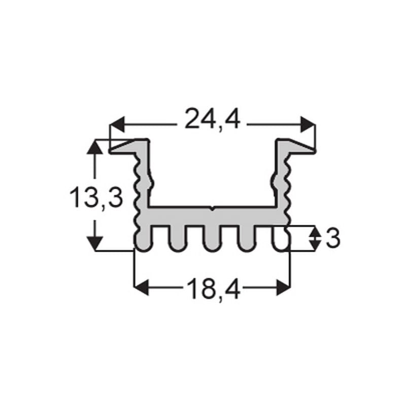 Profilo per strisce led INCASSO ALTA DISSIPAZIONE. Adatto per strisce sino a 40W/m, con diffusore in policarbonato satinato. Finitura: anodizzata. Lunghezza: 2m