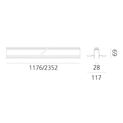 A.24 - Emissione Sharping Incasso - Cassaforma - Lineare - 1176mm. Installazione: Soffitto, Sospensione, Parete, Incasso. Ambiente di utilizzo: Interni. Serie: Indoor. Emissione: Diretta . Lunghezza: 1176mm. Peso: 6kg. Classe I. Ogni modulo cassaforma è dotato di un giunto meccanico per consentire il collegamento tra due moduli complanari incassati. I tappi terminali devono essere ordinati separatamente.