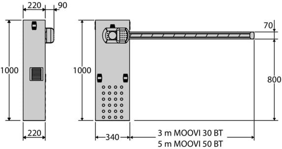 Barriera con motore a 230 V per passaggio utile fino a 3 m e tempo di apertura 4 sec . Reazione all’urto tramite encoder. Colore grigio RAL 7015
