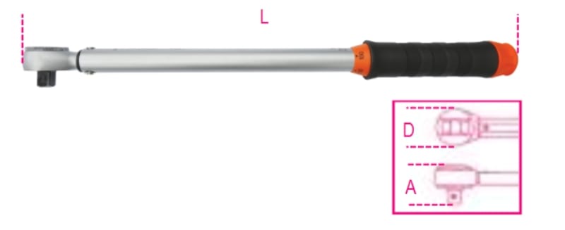 La chiave dinamometrica Beta 610/5 e specifica per gommisti per poter effettuare serraggi destrorsi con 5 coppie preregolate: 90 - 100 - 120 - 130 Nm. La chiave 610/5 copre il serraggio della maggior parte dei cerchioni auto in commercio. Caratteristiche: ? Adatta per coppie di serraggio 90 - 100 - 110 - 120 - 130 Nm ? Cricchetto reversibile con meccanismo a 72 denti per un utilizzo rapido e preciso della chiave, assicurando un angolo di ripresa di 5? ? Precisione di serraggio ? 4% ? Selezionedella coppia molto rapida ? Attacco quadro 1/2;