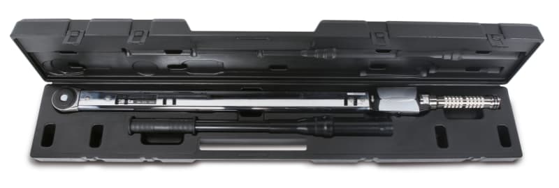 La chiave dinamometrica Beta 678/C e particolarmente adatta per gli utilizzi gravosi a elevate coppie di serraggio. Il meccanismo a scatto avvisa l'operatore del raggiungimento della coppia impostata attraverso uno scatto meccanico percettibile anche all'udito. Caratteristiche: ? Precisione ? 4% come da normativa UNI EN ISO 6789 ? Scala graduata con incremento di 10 Nm ? Cricchetto semplice per un utilizzo sia destrorso sia sinistrorso ? Scatto udibile per segnalare il raggiungimento della coppia impostata ? Chiave fornita con cassetta ? Corredata di certificato di taratura secondo la norma UNI EN ISO 6789