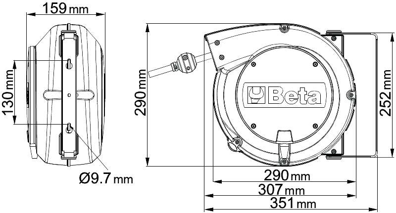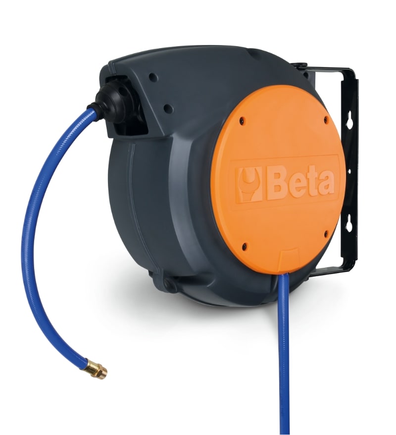 Caratteristiche: ? Pressione di utilizzo massima 15 bar ? Tubo in Poliuretano retinato ? Struttura in Polipropilene ? Dispositivo automatico di arresto del tubo alla lunghezza desiderata ? Cremagliera disinseribile per tubo sempre in trazione ? Temperatura di utilizzo -5?C/+50?C ? Fornito con staffa orientabile di 180? e seconda staffa a incastro rapido
