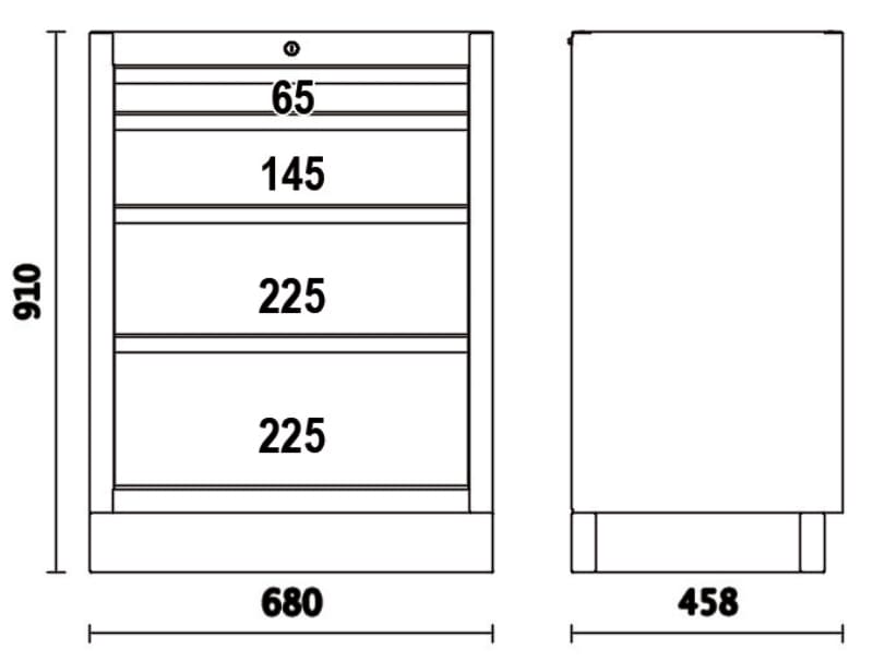 Caratteristiche: ? 4 cassetti da 566x406 mm, montati su guide telescopiche a sfera ? Piano dei cassetti protetto da tappetini di gomma espansa ? Serratura centralizzata frontale ? Dotato di piedini regolabili in altezza ? Predisposizione per l'inserimento dei termoformati