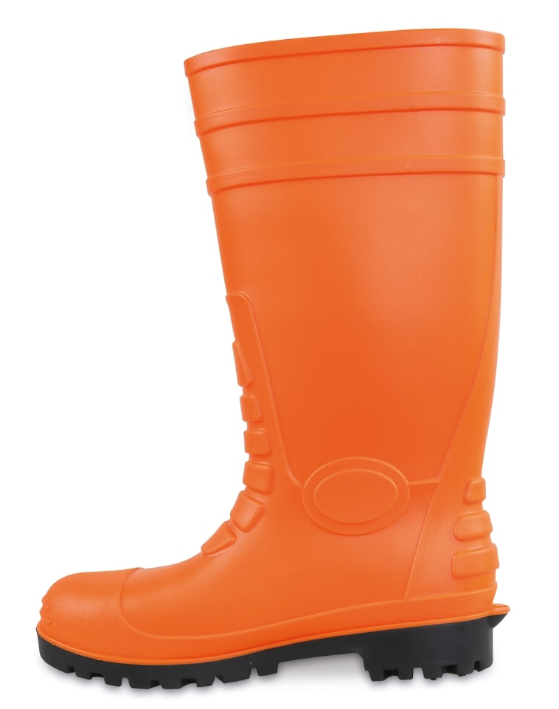 Tomaia:Mescola di PVC e gomma nitrilica Suola:PVC nitrilico artigliato Puntale:Acciaio, resistenza 200 joule Antiperforazione:Acciaio inox Taglie:EU: 38-47 UK: 5-12