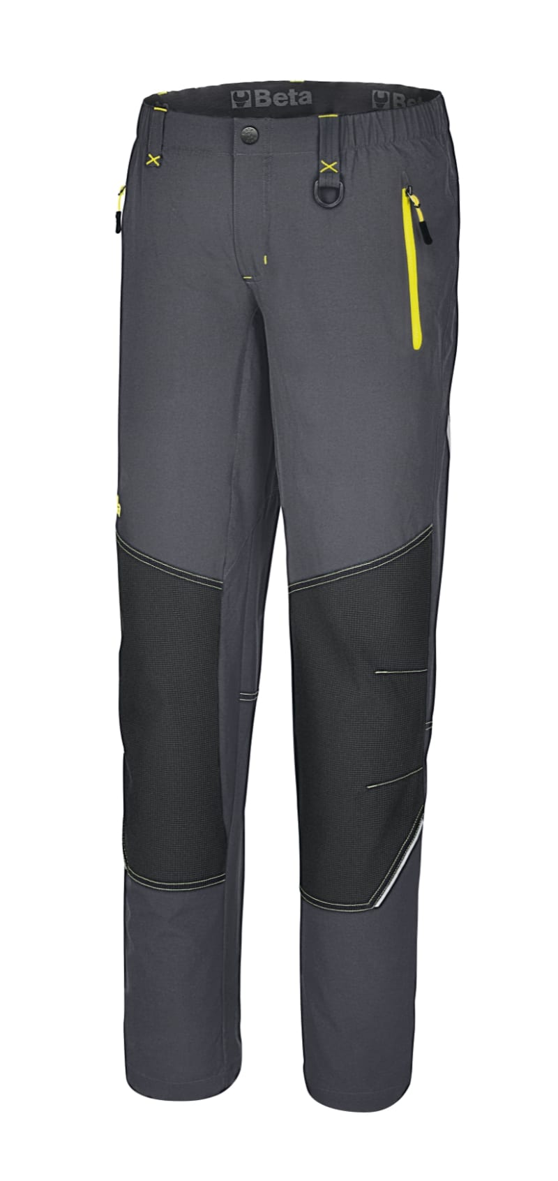MATERIALI:90% nylon, 10% tessuto elasticizzato, 140 g CARATTERISTICHE:? Slim Fit ? Tessuto a 4 direzioni (4WAY STRETCH) per aumentare il comfort ? Inserti rinforzati su ginocchia e retro per aumentare la resistenza ? Vita elasticizzata ? Due tasche in vita ed una tasca posteriore, tutte con chiusura zip ? Fondo gamba elasticizzato e regolabile a coulisse ? Inserti reflex COLORE:Grigio con dettagli gialli Taglie:XS, S, M, L, XL, XXL, XXXL 46, 48, 50, 52, 54, 56, 58