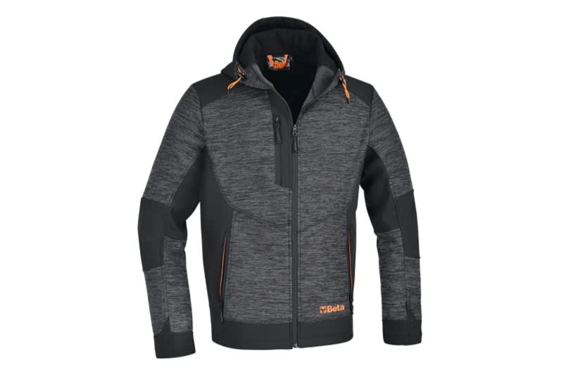 Materiali:? Tessuto principale: fleece 100% poliestere, 250g ? Inserto: softshell 100D con fleece accoppiato, 270 g Caratteristiche:? Chiusura frontale con reversed zip ? Una tasca al petto con chiusura a zip con spirale arancione ? Due profonde tasche in vita con chiusura a zip con spirale arancione ? Cappuccio fisso con regolatori a coulisse ? inserti in tessuto softshell su cappuccio, spalle, gomiti, fianchi e vita Colore:? Pile: grigio melange ? Softshell: nero Taglie:XS, S, M, L, XL, XXL, XXXL