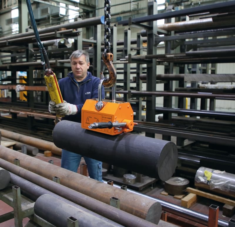 I sollevatori magnetici permanenti ROBUR sono attrezzature compatte, robuste ed affidabili, ampiamente utilizzate in fabbriche, magazzini, banchine portuali e in strutture di trasporto. Progettate in conformita alla norma europea EN13155, queste attrezzature sono idonee a sollevare e movimentare materiali in ferro magnetico come stampi, lamiere, tubi, raccordi, travi e barre. Il magnete permanente e realizzato in una lega al Neodimio Ferro e Boro, in grado di esercitare una forza attrattiva estremamente elevata, tanto da essere definita ;supermagnetica;. Non e richiesta tensione elettrica, dunque possono essere utilizzati anche in luoghi in cui non sia disponibile l'allacciamento. Un solo operatore puo sollevare, trasportare e rilasciare il caricofacilmente, agendo sulla leva di manovra: quando viene attivata la leva, sulla posizione ON, un meccanismo a molla la blocca, mantenendo il magnete attivo e prevenendo un disattivazione accidentale. NOTE TECNICHE: ? Non rimuovere mail la leva dalla posizione ON finche il carico non si trova a terra. ? L'efficienza massima e garantita con materiali a basso tenore di carbonio(es. S235, S275, S355) ? Non utilizzare con materiali amagnetici o parzialmente magnetici (es. acciaio inox Aisi 304) ? Controllare sempre il traferro e in funzione di esso ridurre la portata o valutarne l'impossibilita di utilizzo. ? Verificare che tra il magnete e il carico non siano presenti pellicole protettive, sporco, grasso, olio, ecc e nel caso rimuoverle. ? Controllare sempre lo spessore della superficie, e in funzione di essa ridurre la portata o valutarne l'impossibilita di utilizzo. ? Per superfici tonde e sempre necessario ridurre la portata come indicato sul manuale. Dati tecnici: ? Coefficiente di sicurezza: 3 ? Piastra di identificazione seriale Certificati disponibili: ? Certificato del Fabbricante ? Dichiarazione di Conformita CE ? Rapporto di Prova tipo 2.2 UNI EN10204 ? Manuale d'uso e manutenzione