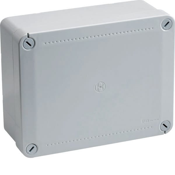 Cassetta di derivazione stagna da parete Pico, misura 05, con coperchio standard, ideale per proteggere e organizzare e connessioni elettriche indoor e outdoor. Realizzata in ABS autoestinguente grigio (RAL7035), resiste ai raggi UV e agli urti IK08 (EN 62262). Il sistema di chiusura con viti in plastica a 1/4 di giro garantisce una protezione IP56. Con fianchi lisci per un’installazione versatile, misura 240x190x90 mm (LxHxP).