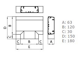 Derivazione a T per canali porta apparecchi e porta cavi in alluminio della linea ALUB di dimensioni b120 x h60 mm. Realizzato in alluminio verniciato bianco Everest RAL 9010, non propaga la fiamma. Soluzione ideale per installazioni a battiscopa e parete, i coperchi, smontabili con attrezzo, garantiscono un’installazione sicura e ordinata.