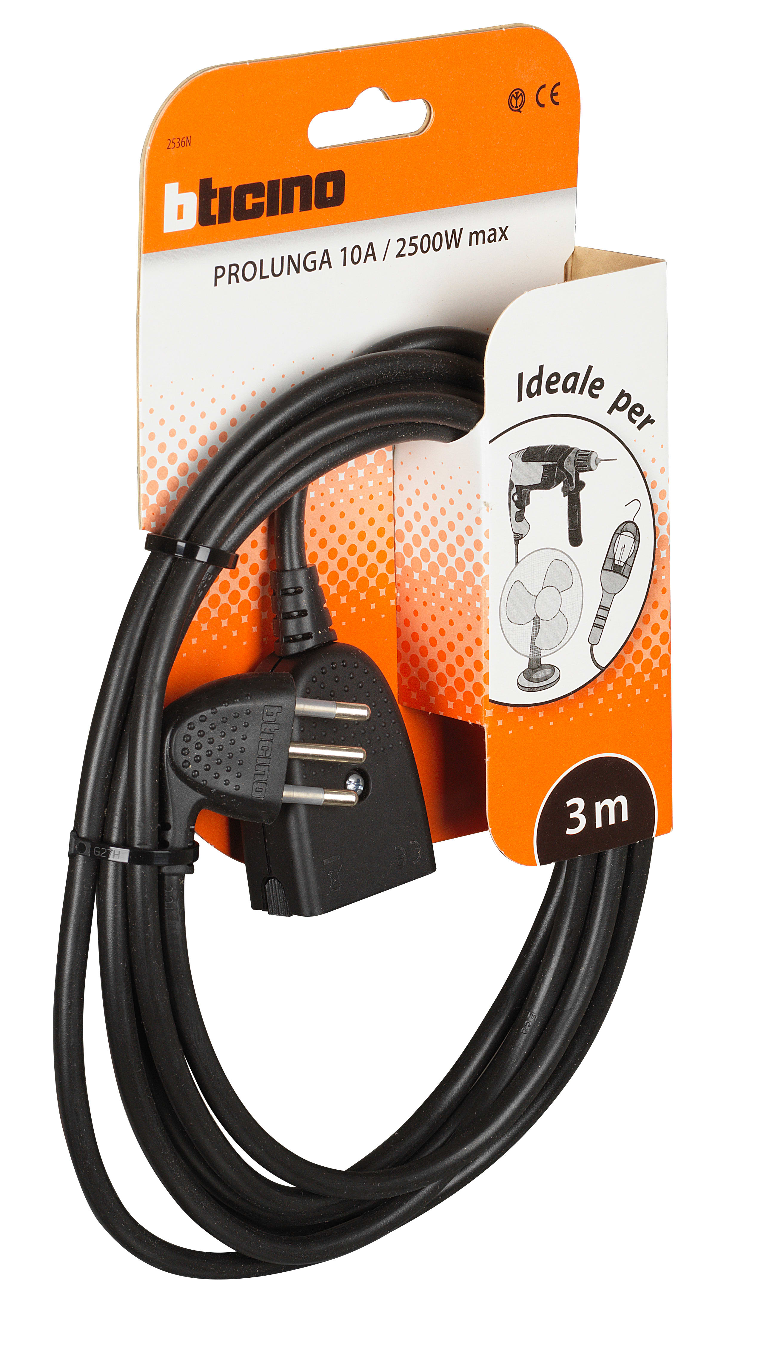 BTICINO - BTI2536N KIT - PROLUNGA 3M 2P+T SP./PR.10A NERA - 2536N