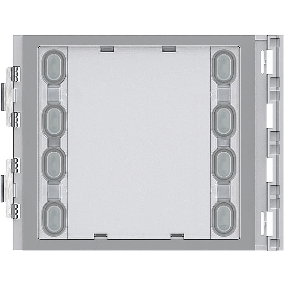 Modulo Sfera con 8 pulsanti aggiuntivi disposti su colonna doppia. Da utilizzare in abbinamento ai moduli fonici 351000 - 351100 ed ai moduli audio video 351200 - 351300. Collegamento tramite apposito multicavo fornito a corredo. Retroilluminazione cartellini portanome comandata dal modulo fonico o dal modulo audio video abbinato. Da completare con frontale di finitura.