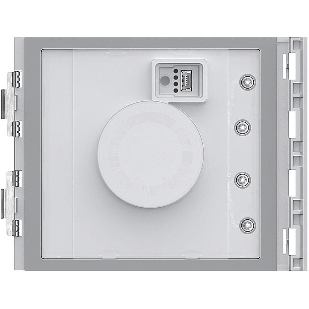 Modulo lettore di badge RFID per attivazione elettroserratura tramite avvicinamento di chiave elettronica (badge). Gestisce fino a 20000 chiavi elettroniche. E\' dotato di relè con contatti (C - NO - NC) e di morsetti (CP - P1 - P2) per il collegamento di un pulsante apriporta locale. La chiave elettronica per l’attivazione della elettroserratura è programmabile tramite modulo stesso, oppure tramite PC effettuando il download del file di programmazione al modulo. Dispone di pulsante per il reset della programmazione e di LED per l’indicazione visiva dello stato di accesso. Retroilluminazione notturna a LED. Da completare con frontale di finitura. Collegamento agli altri moduli tramite apposito multicavo fornito a corredo. Il dispositivo può essere utilizzato anche stand alone con alimentazione e funzionamento autonomi. Configurazione tramite configuratori fisici oppure tramite PC e software TiSferaDesign.