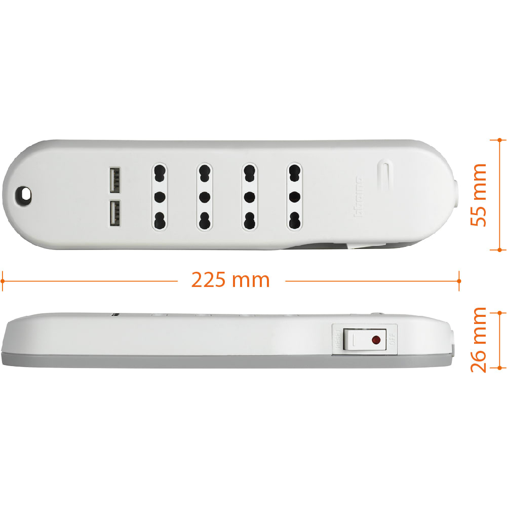 BTICINO - BTI3636DBU SLIM MULTIP 4 PRESE + 2 USB INT SAFE BIA - 3636DBU