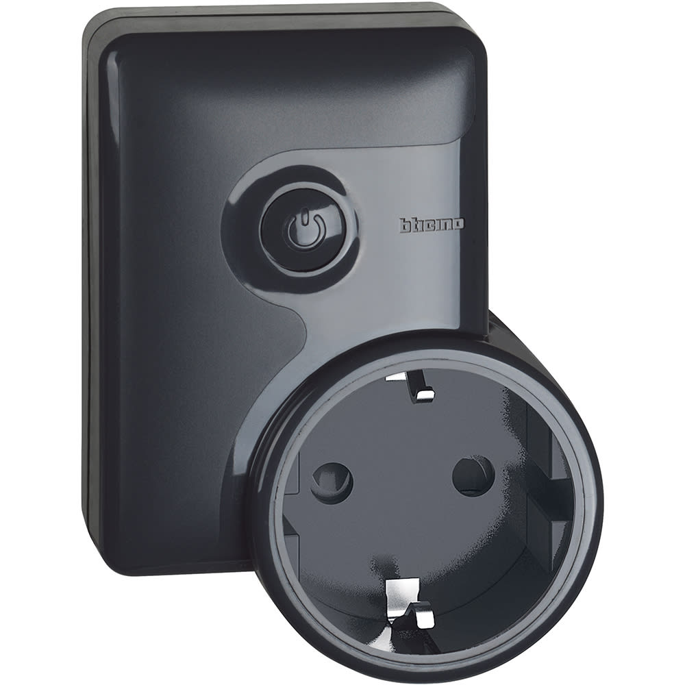 Presa plug&play connessa standard Germania - Inserita direttamente in una presa esistente consente il controllo remoto di tutte le apparecchiature elettriche collegate. Permette inoltre il monitoraggio del consumo istantaneo, giornaliero e mensile. Compatibile con qualsiasi dispositivo con potenze fino a 16 A 3680 W (protetto dai sovraccarichi). Può essere associato a comandi luci wireless. Alimentazione 110-230 Va.c.