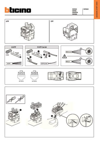 Connettori RJ45 con attacco universale keystone - connessione ad incisione d’isolante senza di attrezzi - per cavo U/UTP 22÷24 AWG a 4 coppie 100? - conforme alla normativa EN 50173-1 e EIA/TIA 568 A/B - non installabile su pannelli di permutazione - colore bianco