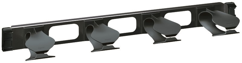 Pannello per l’organizzazione orizzontale dei cordoni di permutazione - completo di 4 anelli guidacavi in lamiera 15/10 - installazione mediante l’innovativo sistema quick fix senza l’utilizzo di dadi e viti - 1 unità rack - colore nero RAL9005