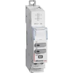 Modulo EMS di comando universale. Consente di comandare a distanza diversi dispositivi elettrici, motorizzati e moduli di controllo per apparecchiature modulari (interruttori differenziali e magnetotermici) o dispositivi di potenza (ad esempio interruttori scatolati o aperti). Dotato di micro selettori (sul lato) è possibile configurarlo in funzione del di tipo contatto (NO o NC), o dello stato (contatto mantenuto o contatto momentaneo)