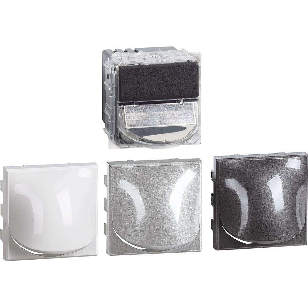 lampada direzionale che consente di creare una illuminazione direzionale e decorativa. Se ne consiglia l\'installazione a 30 cm dal suolo - Può essere comandata da un interruttore standard o da un interruttore elettronico senza neutro, da un dimmer o da un interruttore automatico con neutro - Lampada LED - Consumo 2,2W - Flusso luminoso 70 lumen - Durata: 50.000 ore circa - fornita in confezione con base neutra e mostrine di finitura nei colori bianco, Tech, antracite - 2 moduli