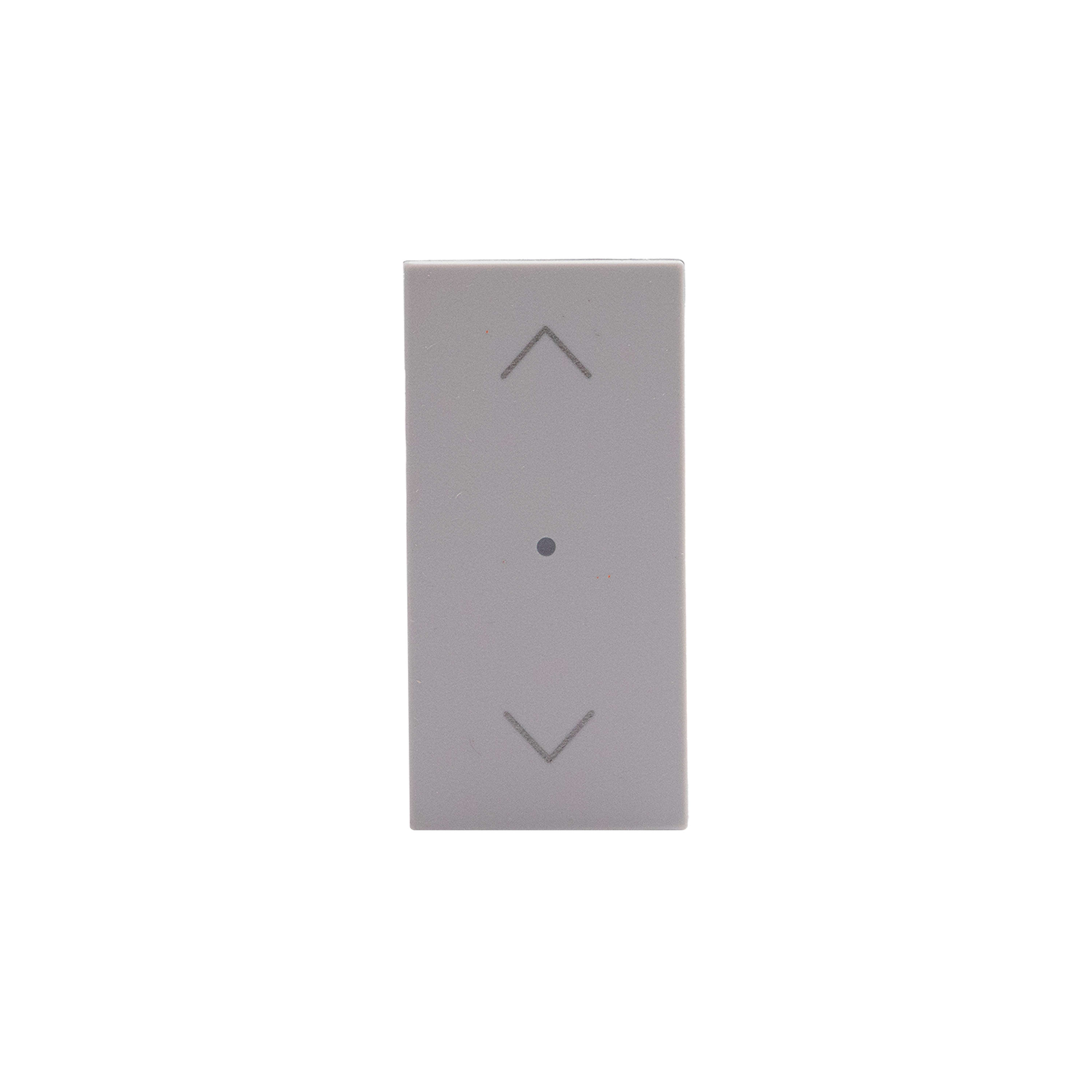 Comando wireless per tapparelle; permette il controllo di uno o più comandi tapparella connessi. Può essere installato in qualsiasi scatola da incasso senza alcun cablaggio. La batteria può essere sostituita senza rimuoverlo dal supporto. LED integrato per la segnalazione batteria scarica. Alimentazione a batteria 3V tipo CR2032 (fornita a corredo) con autonomia di 8 anni - 1 modulo - grigio