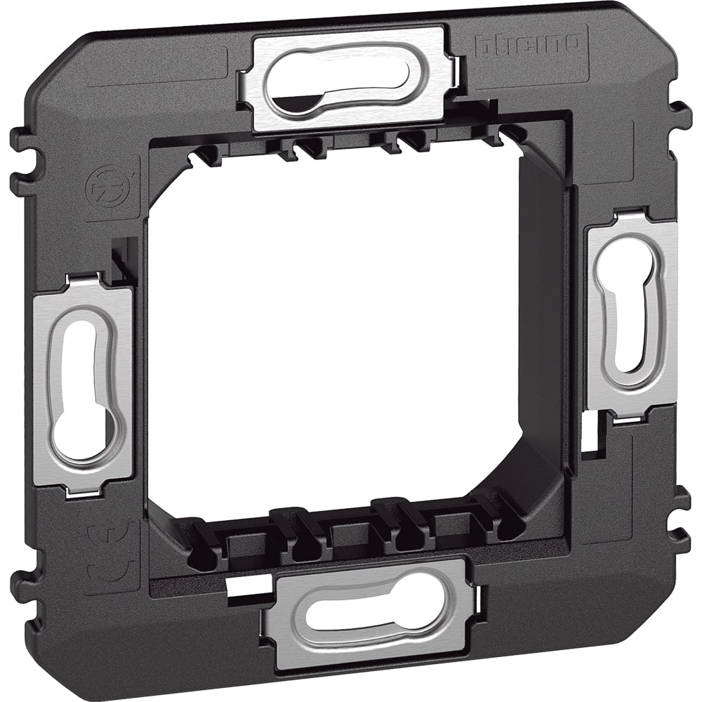 Supporto per montaggio dei frame elettrificati art. KW8102P1, art. KG8102P1 e art. KM8102P1 per comandi digitali MyHOME in scatole 2 moduli.