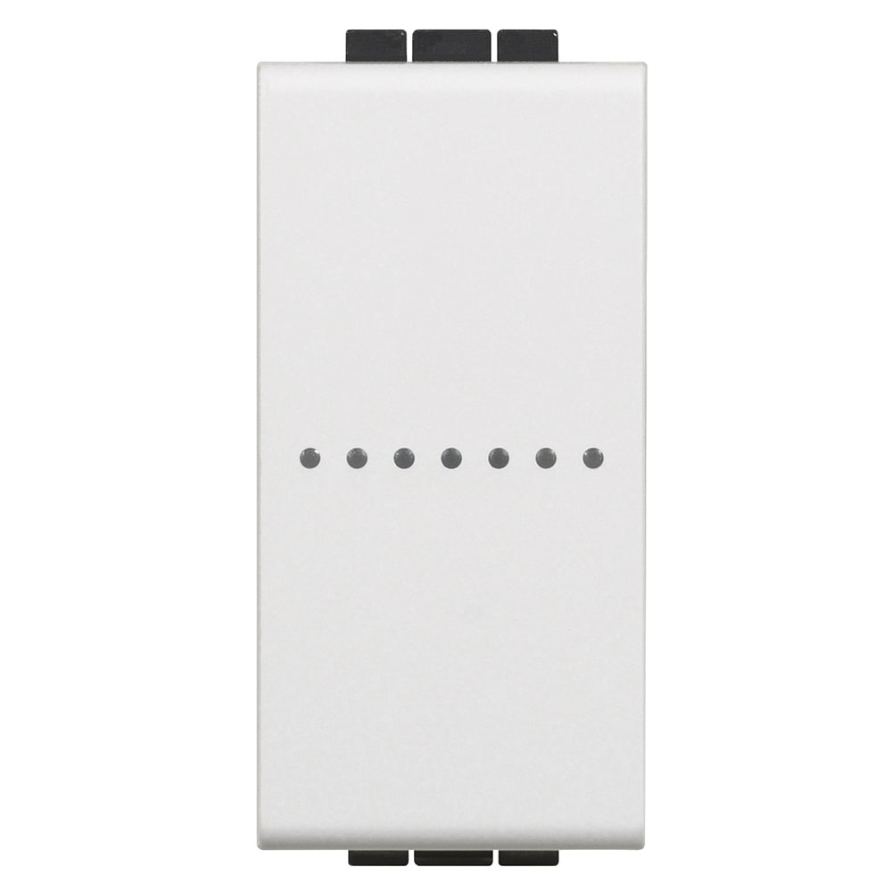Deviatore connesso. Permette di controllare le luci localmente o da remoto. Si installa come un deviatore tradizionale ed è compatibile con tutti i carichi con potenza massima di 250 W. È dotato di un LED blu, configurabile dall’APP HOME + CONTROL, per le funzionalità di localizzazione e stato carico. Può essere associato ad uno o più comandi wireless. Attenzione: è necessaria la connessione al neutro. Alimentazione 110-230 Va.c. - 1 modulo.