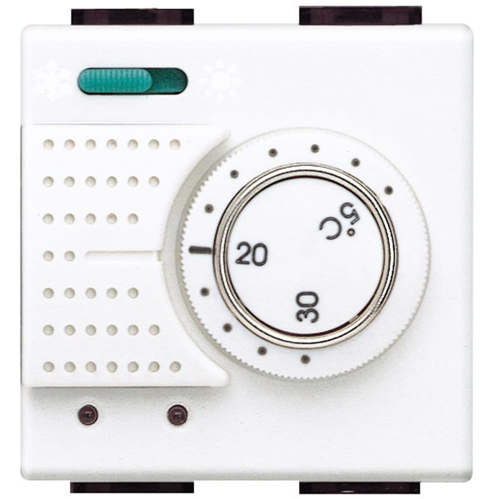 Termostato ambiente elettronico con commutatore estate/inverno - uscita relè contatto C-NO 2A 250V - alimentazione 230 Vac - Bianco