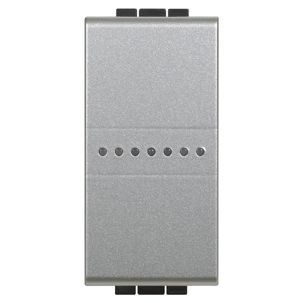 Deviatore connesso. Permette di controllare le luci localmente o da remoto. Si installa come un deviatore tradizionale ed è compatibile con tutti i carichi con potenza massima di 250 W. È dotato di un LED blu, configurabile dall’APP HOME + CONTROL, per le funzionalità di localizzazione e stato carico. Può essere associato ad uno o più comandi wireless. Attenzione: è necessaria la connessione al neutro. Alimentazione 110-230 Va.c. - 1 modulo.