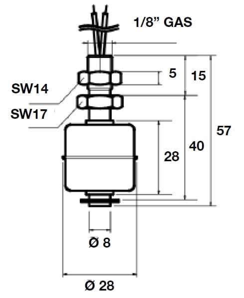 Sensore magnetico di livello, Contenitore cilindrico in acciaio inossidabile AISI 304. I modelli in acciaio inossidabile sono utilizzabili anche in ambienti corrosivi. I sensori di livello miniatura trovano applicazione ideale nell’industria alimentare,chimica, petrolifera. Funzione d’uscita invertibile capovolgendo il galleggiante.
