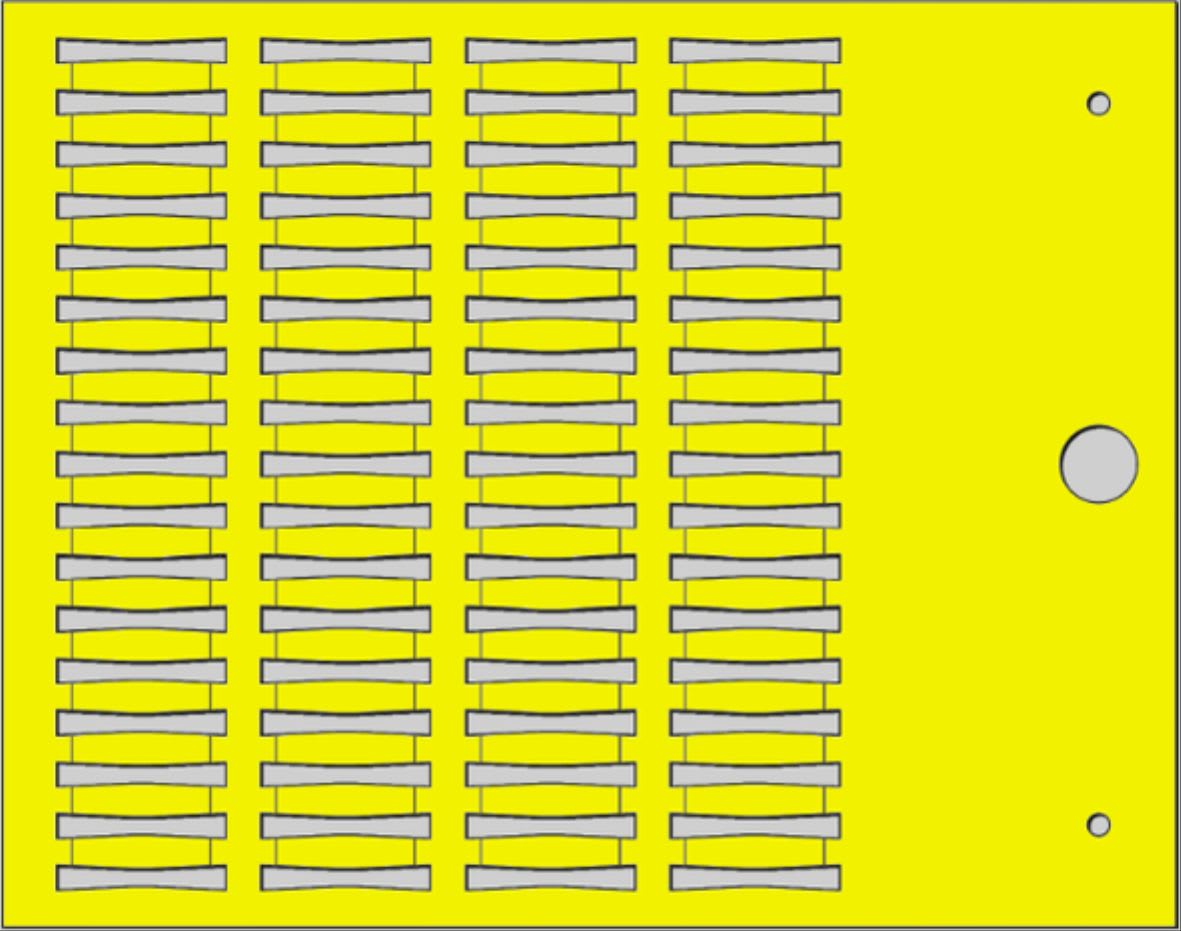 Le targhette MG-TPMF, serieFLAT, vengono utilizzate con i tubetti PMF per la siglatura di cavi, guaine, tubi e componentistica. La scheda è strutturata a pettine: staccando gli steli che la compongono, le targhette si presentano pronte per essere inserite nei tubetti. Una scheda viene stampata completamente in circa 10 secondi, compresa l’eventuale identificazione degli steli e l’indicazione del tubetto da utilizzare.